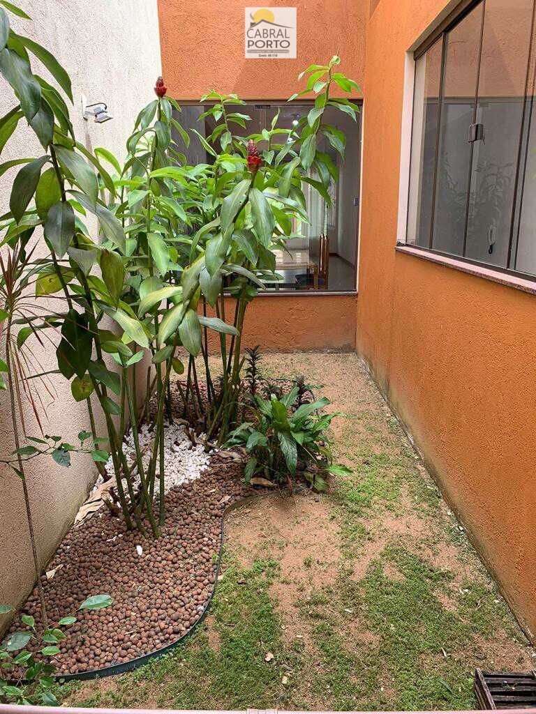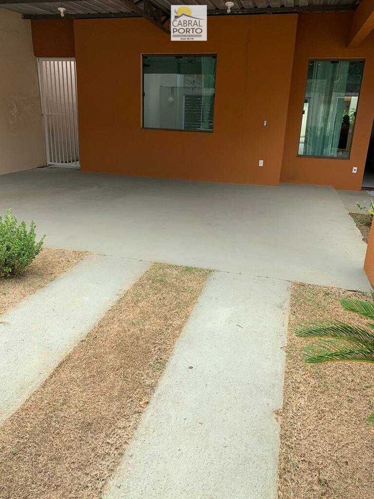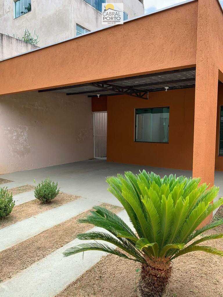 Casa possui três quartos, sendo uma suíte, área com lavanderia, garagem para três carros, sala, cozinha e banheiro social.